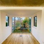 Die Innentüren wurden in Stahlzargen eingesetzt und bestehen aus einem hochwertigen Marken-Vollbautürblatt. Sie wurden in weiß ausgeführt und verfügen über Edelstahlbeschläge in schwarzer Farbe. Die Durchgangslichte beträgt 80/210 und ist somit 10 cm höher, als baurechtlich vorgeschrieben wäre.