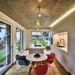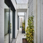 Für die im Untergeschoss der Hausanlage gelegenen Schlafzimmer wurden südseitig begrünte Lichtschächte geschaffen (1,10m Breite), deren Ausführung und Bepflanzung an japanischen Gärten erinnert. Die Zimmer mit einer Raumhöhe von ca. 3,60 m werden durch diese Konstruktion optimal mit Tageslicht durchflutet. Das die Räume umgebende Erdreich erzeugt während der heißen Sommermonate auf natürliche Weise eine angenehm kühle Raumtemperatur und fungiert im Winter als Wärmespeicher. Diese Schaffung von Lebensraum bis unter die Erde wurde bereits sehr erfolgreich in anderen Objekten von Daneshgar Architects realisiert.