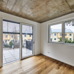 Die Wohnungseingangstüren der Marke Katzbeck inklusive Türspion sind außenseitig mit Aluoberfläche RAL 7016 Anthrazitgrau (matt) und innenseitig mit Holzoberfläche H011 in Verkehrsweiss ausgeführt. Die Durchgangslichte der Eingangstüren beträgt 90/210 und ist somit um 10 cm höher, als baurechtlich vorgeschrieben wäre. Die Zylinderrosetten sind in Edelstahl ausgeführt. Ein separater Eingangsbereich führt zu den Tops 1 und 2, dieser wurde verglast und mit einer eigenen Eingangstüre für beide Tops versehen.